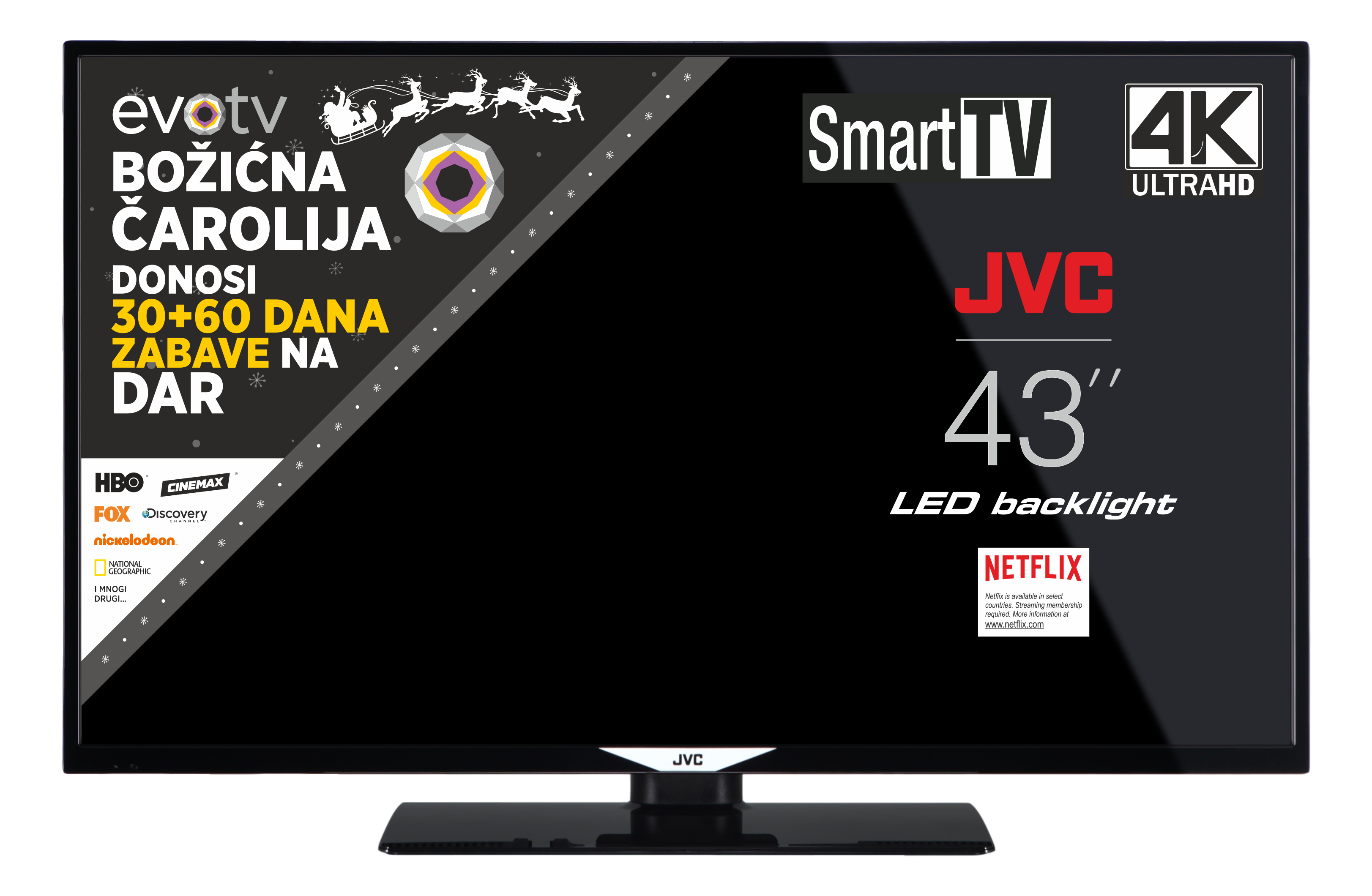 Kupnjom JVC televizora LT-43VU53C ostvarili ste poklon 30 + 60 dana besplatne evotv usluge.